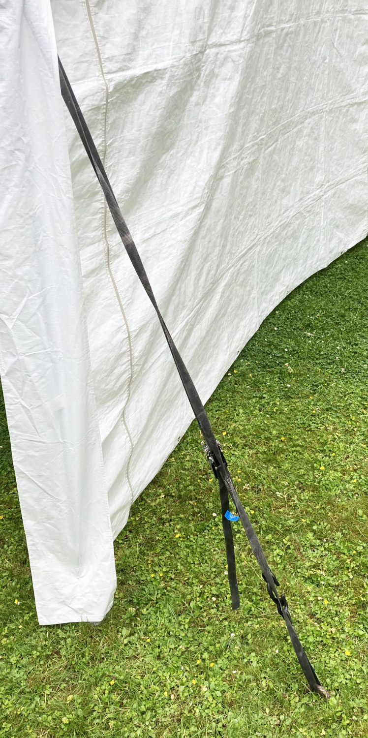 In unserem Zeltsicherungspaket zur Abspannung sind 4 große Heringe und 4 Spanngurte enthalten. Hiermit können Sie die Partyzelte und Faltpavillons auf unbefestigten Untergründen (z.B. Rasenflächen) zusätzlich abspannen oder an fest eingebaute Dinge anbinden (z.B. Zäune, Laternen, Bäume, Dachrinnen) und so das Zelt gegen Windeinwirkungen besser schützen.